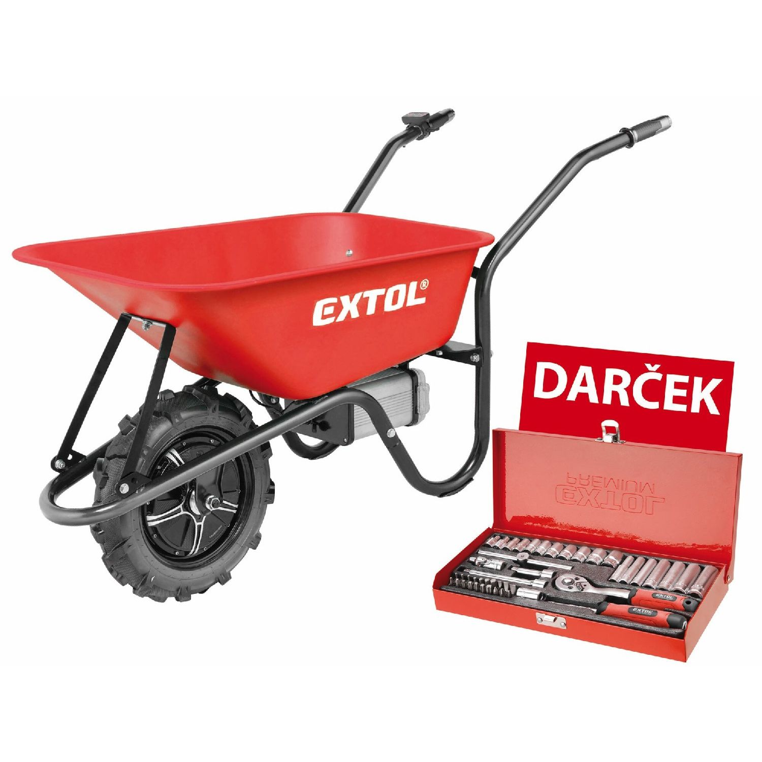 Akumulátorový fúrik s elektrickým pohonom je určený na prepravu tuhých, sypkých alebo hustých materiálov. Vďaka elektrickému pohonu sa výrazne urýchli a uľahčí preprava materiálu, čo významne zvýši produktivitu práce. Fúrik je poháňaný najmodernejším bezuhlíkovým motorom s vodeodolným krytím IP64 a na pravej rukoväti má ovládací panel, kde je pomocou palca možné nastaviť okamžitú rýchlosť pohybu dopredu aj dozadu. Ak je to nutné, je možné motor kompletne vypnúť a používať fúrik len na ručný pohon. Elektrická brzda sa používa pokiaľ potrebujete zamedziť pohybu fúrika na mieste. Pneumatika má hlbokú vzorku do terénu. Zdrojom elektrickej energie je silná, vyberateľná 40V/6Ah Li-ion batéria s LED displejom ukazujúcim jej úroveň nabitia a okamžité napätie batérie.