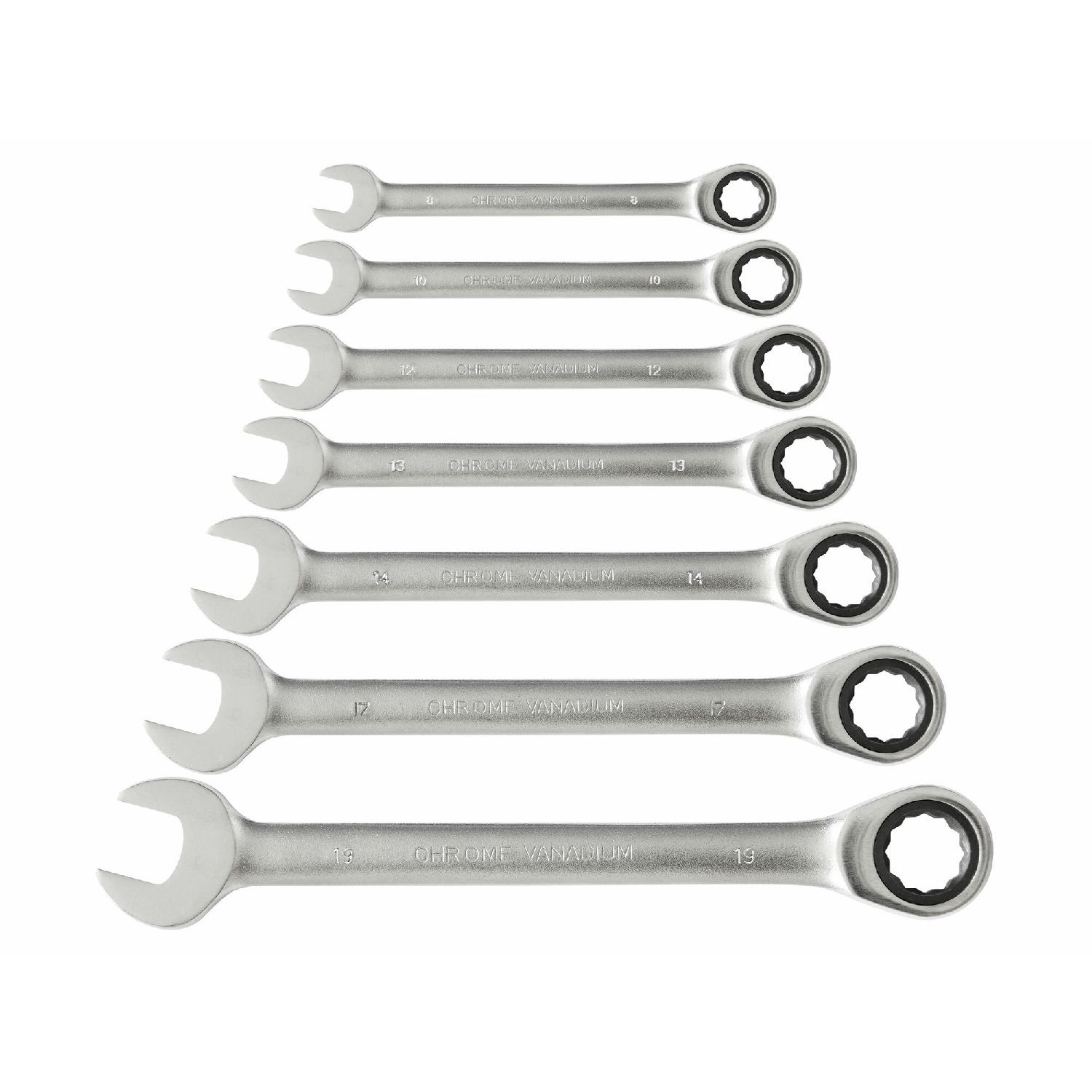 Kľúče očko-vidlicové, račňové, 72 zubov, 7-dielna sada, 8-19mm, EXTOL PREMIUM