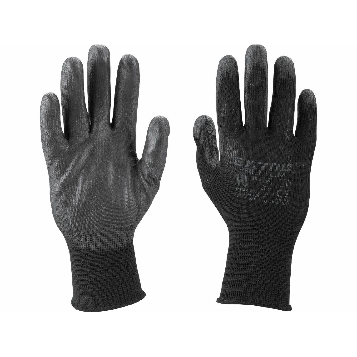 Rukavice z polyesteru polomáčané v PU, čierne, 10", EXTOL PREMIUM