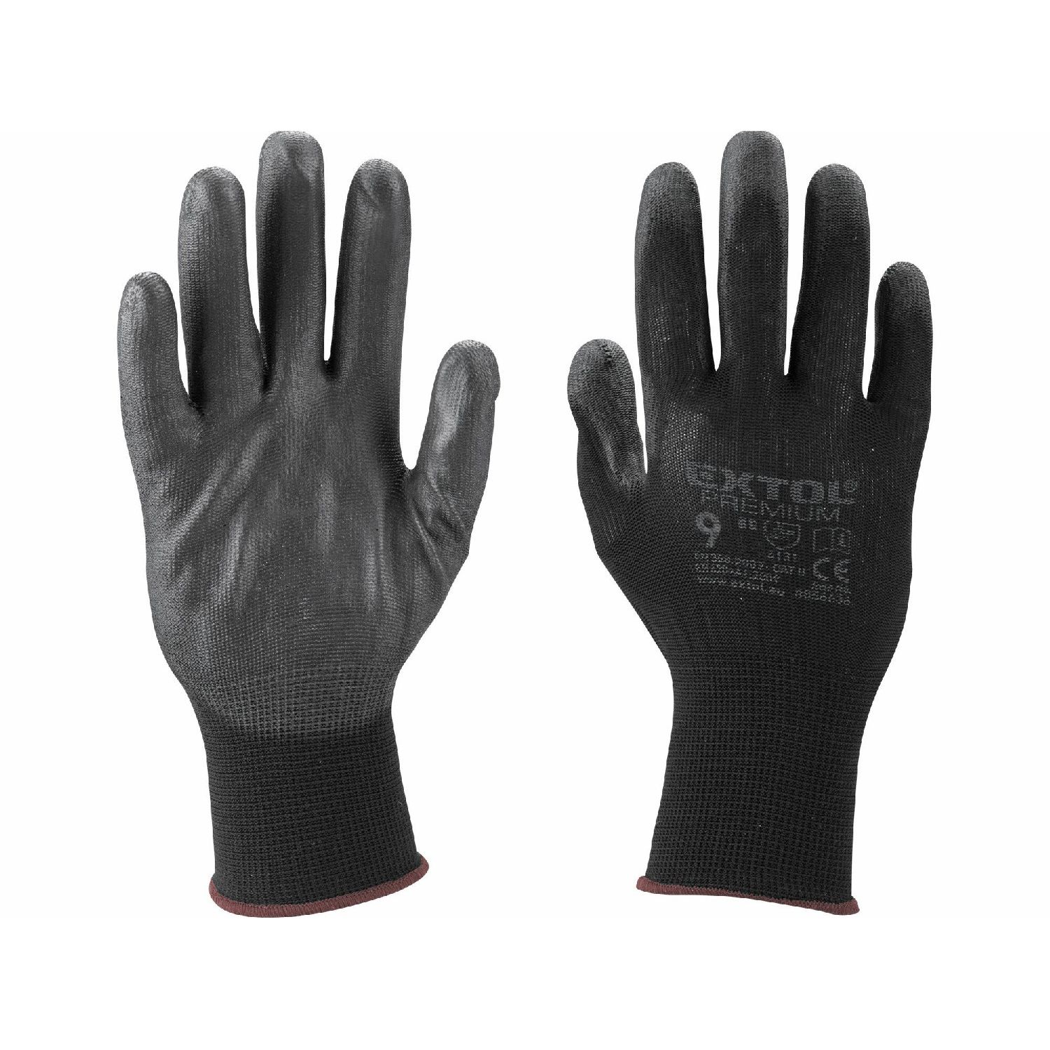 Rukavice z polyesteru polomáčané v PU, čierne, 9", EXTOL PREMIUM