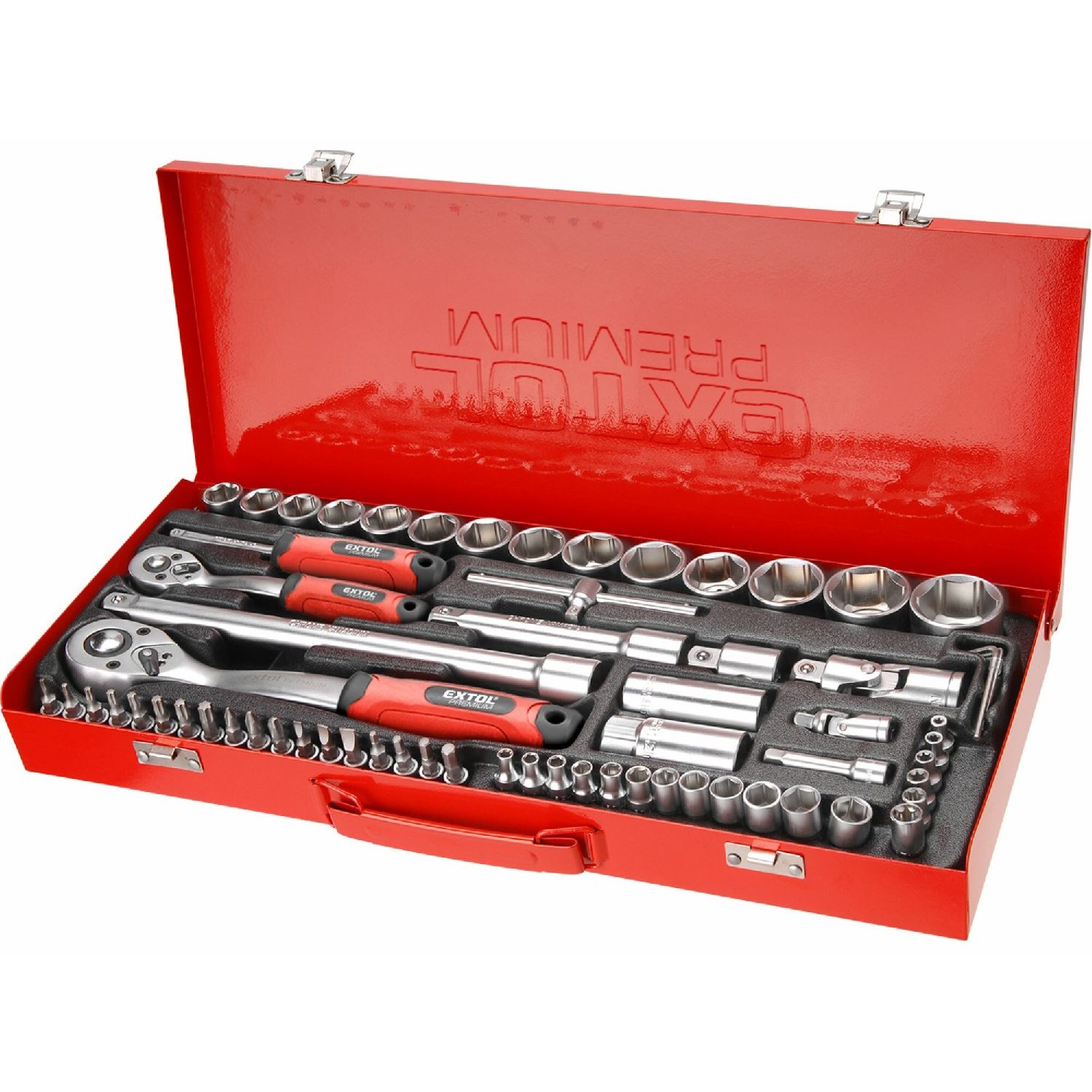 Sada nástrčných a zástrčných kľúčov, 1/4", 1/2", 65ks, EXTOL PREMIUM