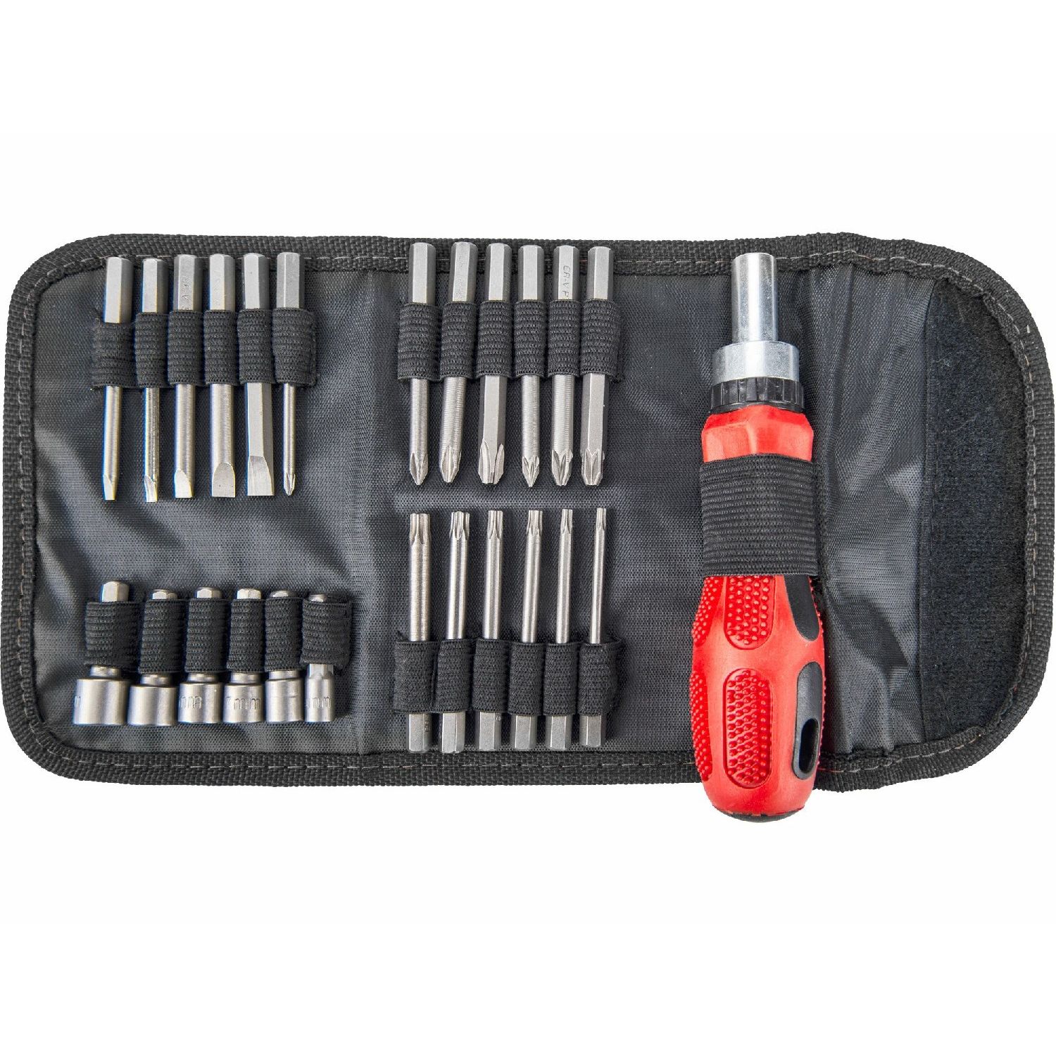 Skrutkovač račňový na bity, 25 predĺžených bitov, textilné puzdro, CrV, EXTOL PREMIUM