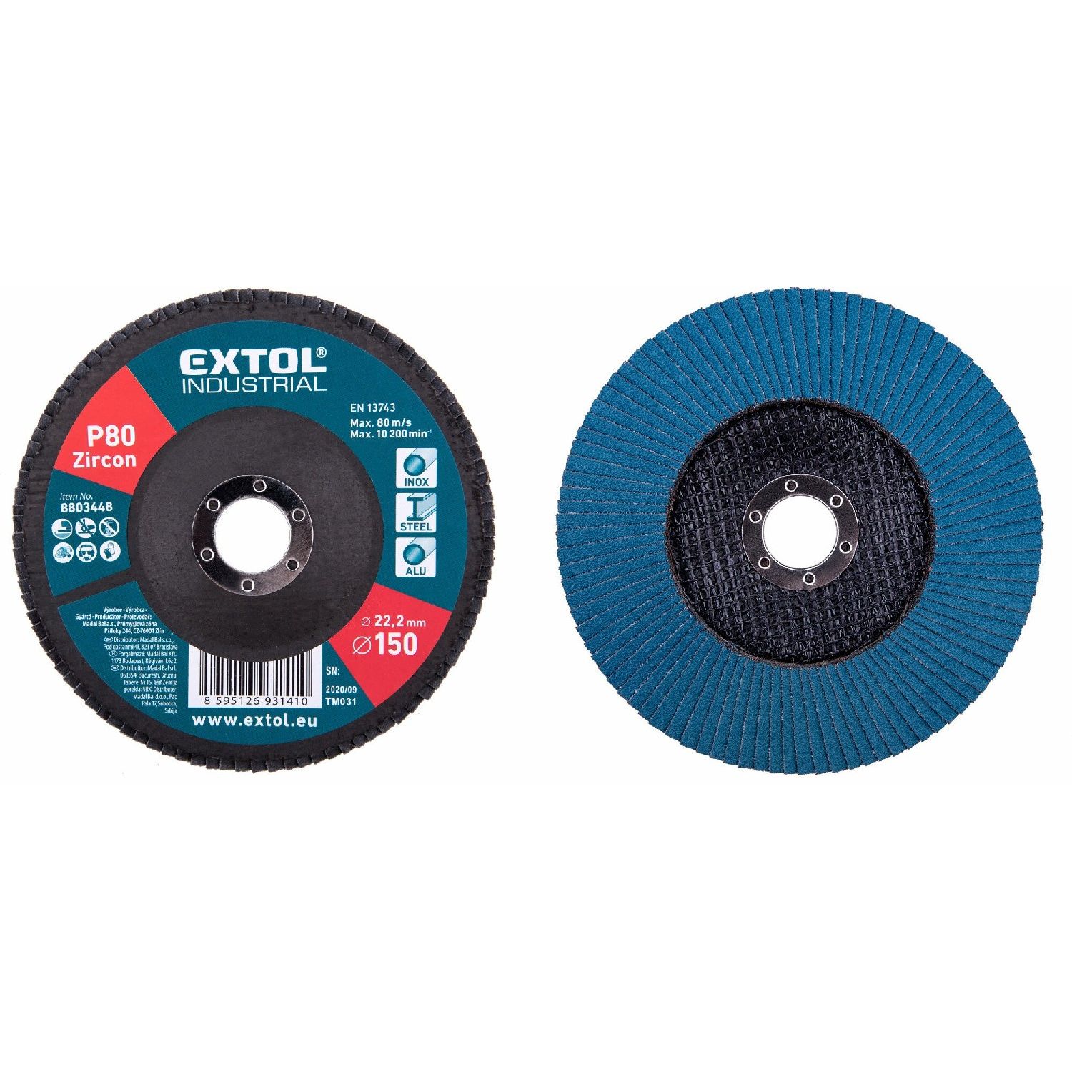Kotúč lamelový šikmý, zirkón, Ø150x22,2mm, P80, EXTOL INDUSTRIAL